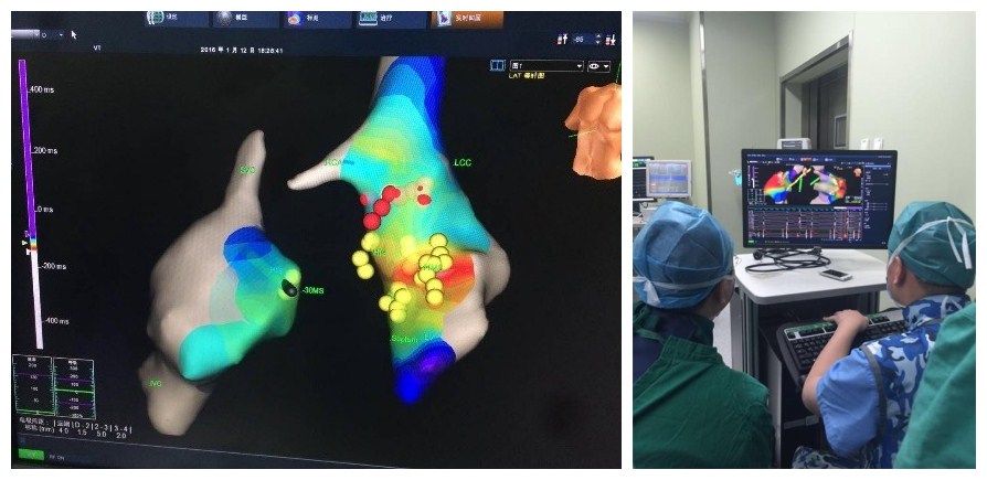 心脏射频消融术是治疗顽固性心律失常的一种高效、先进的治疗手段。其中,特发性室性心动过速和频发室性早搏是一种发病率较高的心律失常,最常起源于右室流出道间隔部,往往药物治疗效果不佳,而射频消融治疗已比较成熟,但起源于主动脉窦内特发性室速或频发室早是一种少见的心律失常,电生理特征及射频消融治疗报道较少,且成功率极低。北京清华长庚医院内科部副部长、心脏内科主任张萍教授和心脏内科副主任医师佘飞带领心脏内科电生理团队,巧妙的规避风险,成功应用三维标测技术完成高难度心律失常射频消融术。