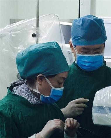 图3 专心致志进行手术操作的张萍教授佘飞副主任医师