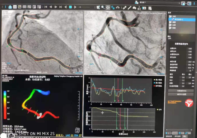 鉴于以上情况,北京清华长庚医院引进了最新的定量血流分数检查(以下简称QFR),该检查依靠冠脉造影三维重建技术和血液动力学系统,可实现精确分析狭窄冠脉血管的功能学指标,与FFR相比,是无创评估冠状动脉生理功能指标的“新标准”。同时,QFR不使用压力导丝及扩血管药物,更不需要进入体内,3-5分钟即可完成检查,检查费用相对低廉,与FFR准确性相当,便利冠心病患者接受更精准的治疗,避免更多的支架植入。目前,北京清华长庚医院已经掌握该项技术,并广泛应用在冠心病的诊断与治疗过程中,到现在已经使用OFR技术治疗100多例患者。