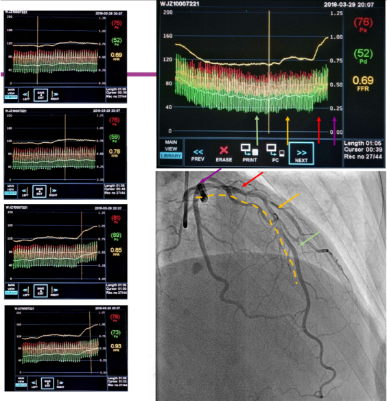 FFR检查是将带有压力传感器的导丝送到冠脉狭窄病变的远端,通过测量狭窄病变远端与近端处压力比值,评估血管狭窄是否引起心肌缺血。FFR检查可提高诊断的准确性,但存在几个不利因素:一是需要使用价格昂贵的压力导丝;二是导丝要被送至冠脉血管内,属于有创操作;三是检查过程中还需使用血管扩张药物,术中可能会出现低血压等并发症;最后是检查耗时,需要30-40分钟。