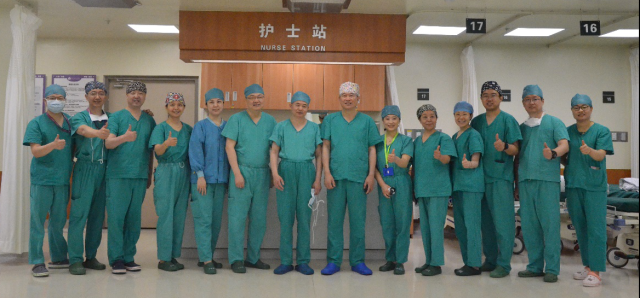 术前,在董家鸿院长、周碧琴总执行长、魏来副院长的全力支持下,由张萍副院长组织,联合器官移植中心、医事服务处、医管部、Liver-ICU、麻醉科、检验医学科等部门,进行多次MDT讨论与评估,制定了周密的诊治流程及应急处理方案,并与武汉协和医院董念国教授团队通过网络会议的形式进行对接,共同设计制定合理的手术方案,综合评估患者疾病发展趋势及耐受情况。