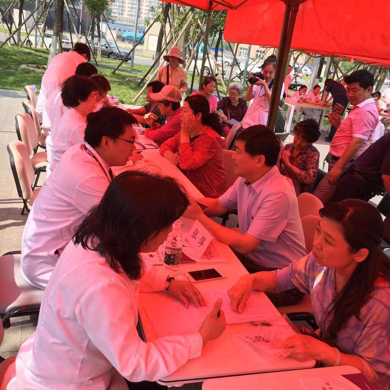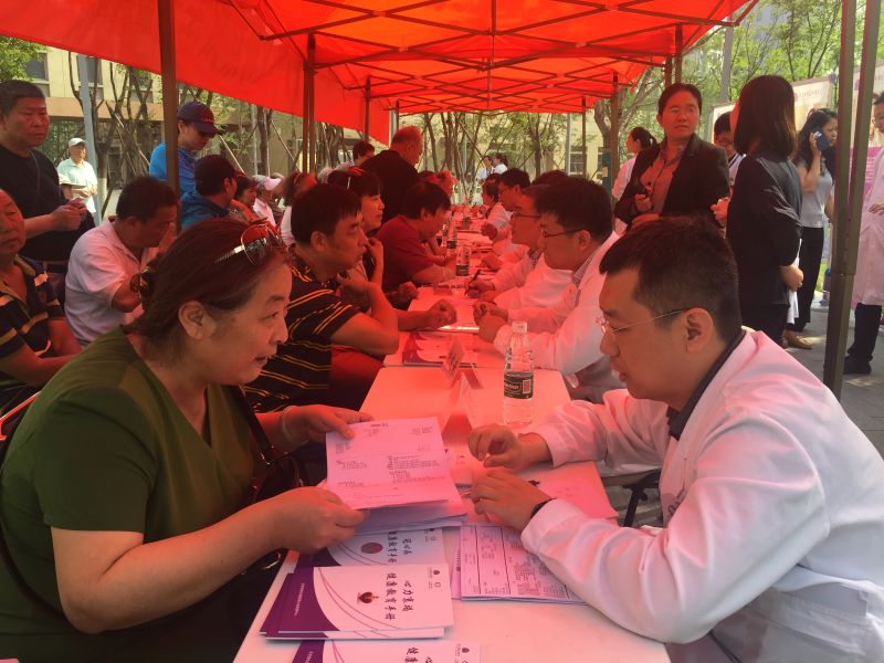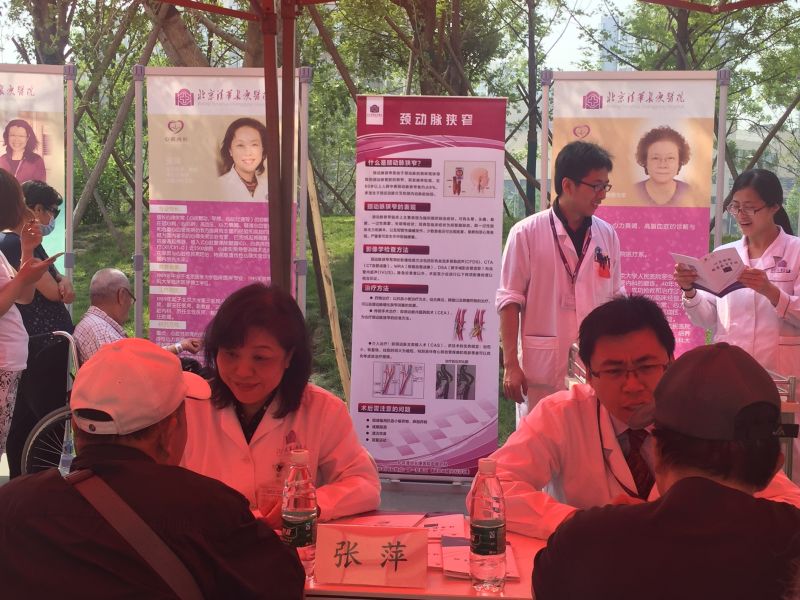 天通苑周边的大爷大妈们早早地来这排起了长队,登记、测血压、测血糖、依次咨询,今天参加义诊活动的心脏血管中心医生共20余位,有张萍主任、吴巍巍主任和缪国斌、刘芳、佘飞、赵克强、薛亚军、李海斌、赵俊来、曹战江医生以及十余位住院医生、研究生,还有两位德高望重的特聘专家葛堪忆教授和聂孝云教授。