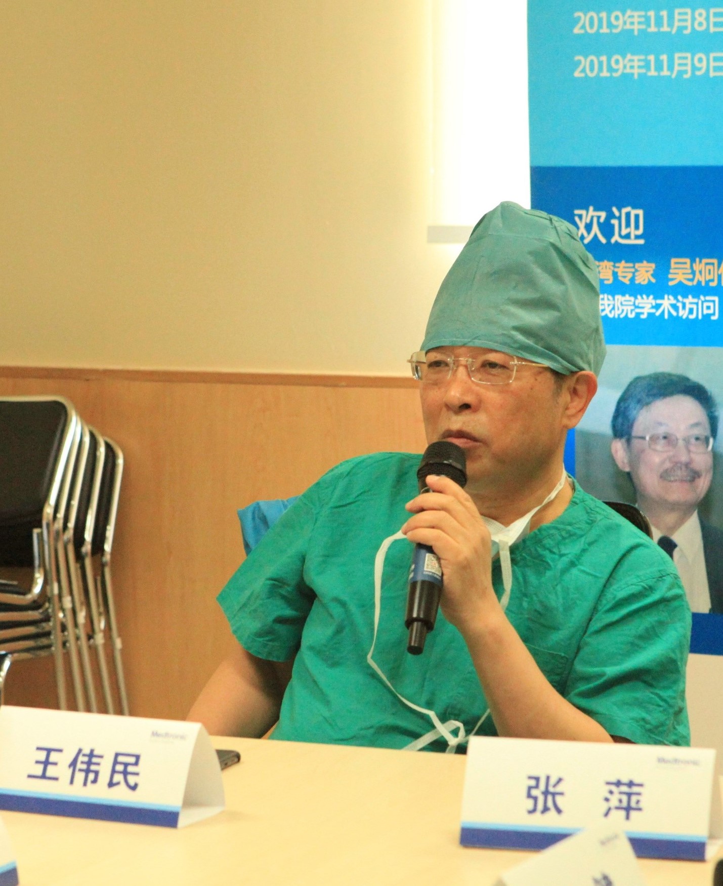 早晨八点半,会议准时开始,北京清华长庚医院特聘专家王伟民教授和心脏内科主任张萍教授担任大会主席(图2),缪国斌主任医师主持会议。张萍主任首先发言,她向大家介绍了王伟民教授、吴炯仁教授和冯文瀚教授,随后指出CTO是指冠状动脉慢性完全闭塞病变,技术要求和费用均较高,是心血管介入技术的最后堡垒,台湾地区不仅掌握该技术精髓,在国际上处于领先地位,时值北京清华长庚医院5周年院庆,十分感谢吴教授的莅临指导,希望今后不断的加强技术合作与交流。大会主席王伟民教授谈到,本次会议不仅设有CTO相关的专题讲座,还有精彩的病例手术演示及直播,相信本次会议将会加强海峡两岸专家在心血管介入质控领域的交流,从而促进临床诊疗技术的规范化建设。同时会议还邀请到北京大学人民医院刘健教授、马玉良教授,首都医科大学附属北京地坛医院吴其明教授,清华大学附属第一医院苗立夫教授,航空总医院任凤学教授,北京大学国际医院杨胜利教授,昌平区中医院李立昆教授,积水潭医院王继红教授,昌平区医院向南坡教授等多位专家教授莅临和指导。