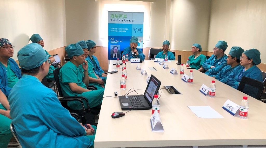 北京清华长庚医院11月11日电(通讯员薛亚军 周杰)时值北京清华长庚医院5周年院庆,“金秋送爽,丹桂飘香”,在这美好的时节,为更好的促进海峡两岸在冠脉介入领域的交流,2019年11月8日在北京清华长庚医院心导管室举办海峡两岸复杂冠脉介入研讨会曁昌平区心血管介入质控研讨会(图1),本次会议特邀台湾长庚纪念医院的吴炯仁教授,以复杂冠脉介入治疗和心血管介入质控为话题,由理论至实践进行深入的探讨。