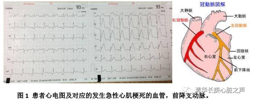传统观点认为急性心肌梗死只会发生在年龄较大的人群中,年轻人就不用担心发生急性心肌梗死。事实证明,随着生活节奏的加快,年轻人不良生活习惯与日俱增,急性心肌梗死的发病年龄也逐渐趋于年轻化。我院心脏内科仅半月,就已经连续收治两例年轻的急性心肌梗死患者。其中一例36岁,另一例仅仅只有25岁,这两位都是男性患者,共同特点:平素大量吸烟,每天要吸入2-3包,且生活习惯极不规律,常常伙同朋友熬夜、酗酒,尤其是第2例患者,12-7日凌晨于大量饮酒后突发剧烈胸痛,胸痛发生后1个小时由120送入我院急诊室,心电图检查提示广泛前壁和下壁心肌梗死(如下图),从体表心电图就可推断出梗死相关血管为供应心脏三支大血管中最主要的前降支动脉闭塞。虽然该患者很年轻,但从临床症状以及典型心电图表现即可确立诊断,我院急诊科与心脏内科联手立即启动胸痛救治“绿色通道”。