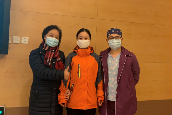 心脏内科张萍主任(左一)、CCU王文护士长(左三)送行钱月护士(左二)支援北京佑安医院