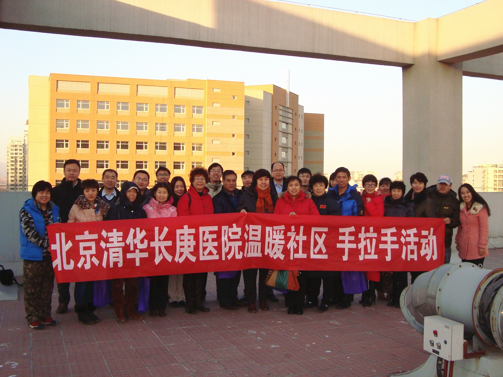 北京清华长庚医院拟于2014年下半年开业,为增进周边居民对医院建设情况的了解,并更好地听取老百姓对医院的筹建建议,12月20日,北京清华长庚医院第四、第七党支部联合开展“温暖社区手拉手活动”,邀请东小口、天通苑南、天通苑北、霍营四个街道办事处,以及东小口医院、昌平区志愿者协会、天通苑社区网站等,35位社区管理者及群众代表来院座谈,并参观医院工程建设。