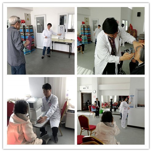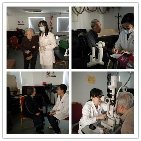 在眼科乔荣华副主任医师的带领下,大家带着眼科的视力表、眼压计、裂隙灯和检眼镜等常规眼科检查设备为养老公寓老人们认真的检查,测视力、测眼压,裂隙灯检查、检眼镜看眼底,医生们耐心的为老人们讲解眼病知识。
