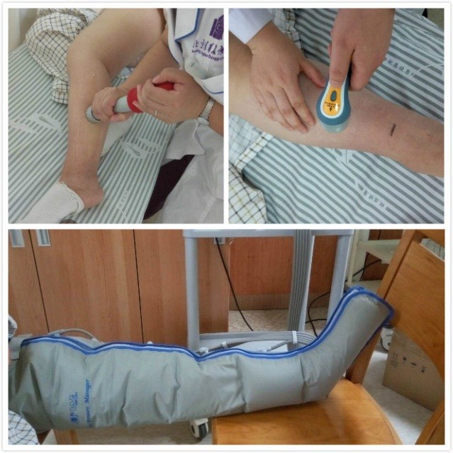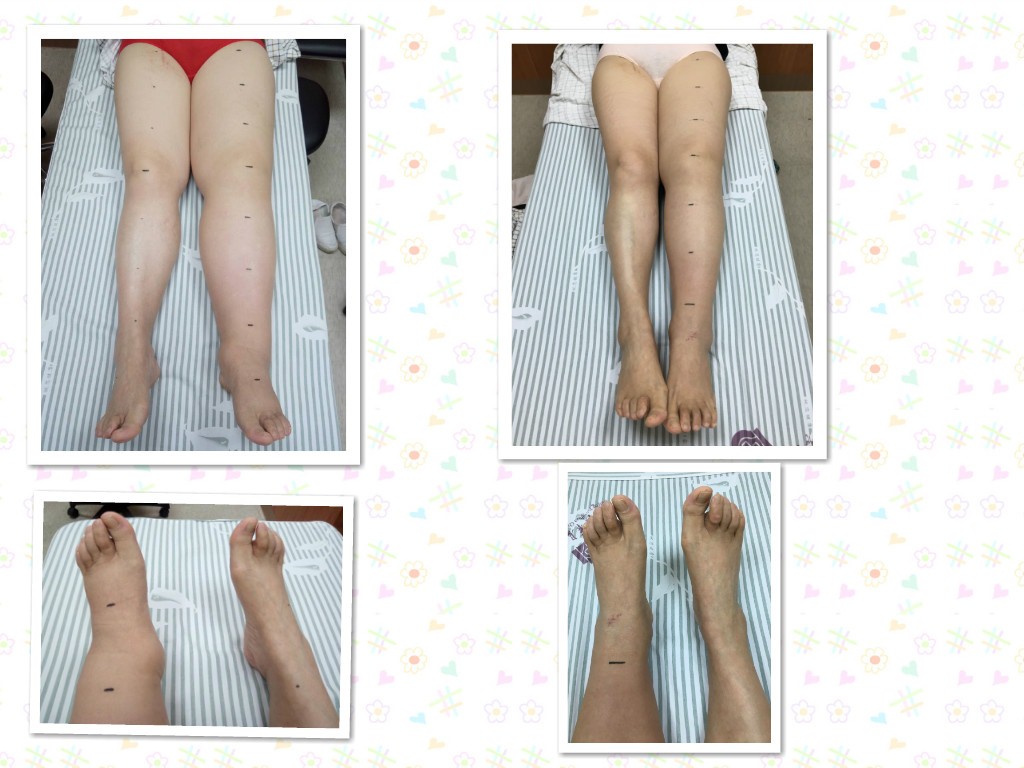 康复医学科的医生和治疗师接诊后首先帮助她评估了淋巴水肿的情况,发现她左下肢水肿和肢体纤维化都比较严重,踝关节明显肿胀。进行了定量测试后制定了详细的水肿治疗计划,包括综合消肿治疗、物理因子治疗、运动疗法等,经过一个阶段的强化治疗,效果棒棒哒。