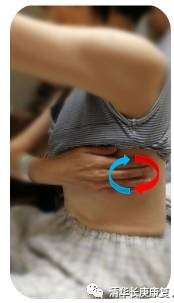 第四步沿着腋中线向下做静止圆或按压肋间隙,激活肋间隙淋巴结