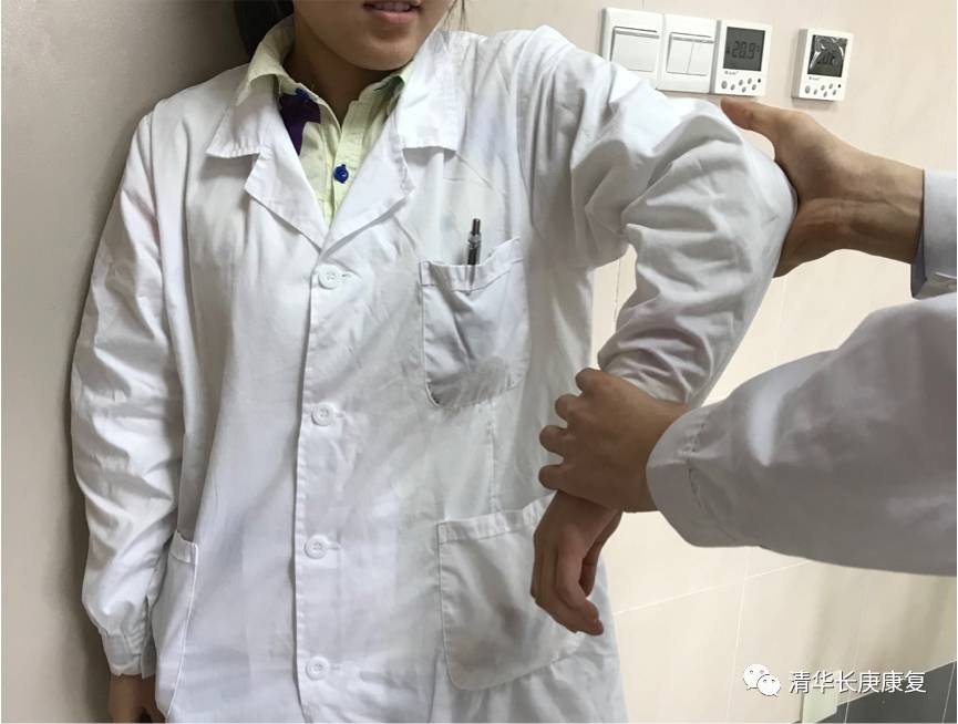 撞击实验:固定肩痛侧肩胛骨,保持肩关节内旋,拇指向下,然后患肩前屈过头顶,若发生疼痛即为撞击征阳性。