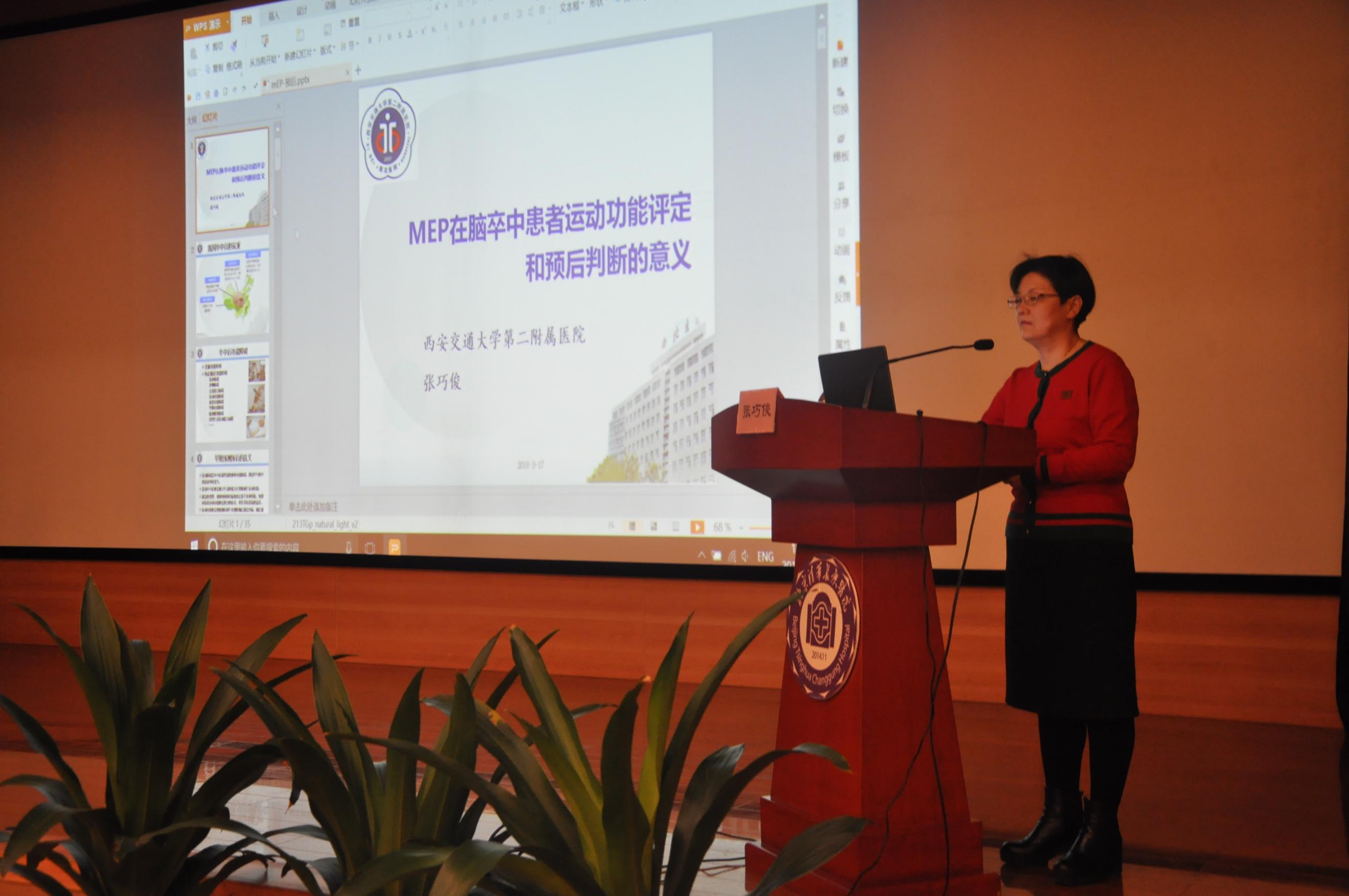 西安交通大学第二附属医院张巧俊主任做“MEP在脑卒中患者运动功能评定和预后判断的意义”主题演讲