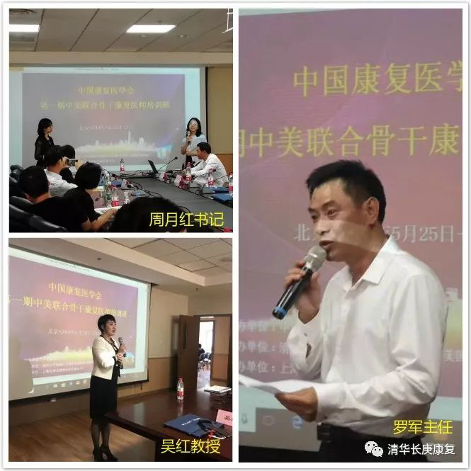 培训班开班仪式上,中国康复医学会培训部罗军主任受中国康复医学会领导委托到会讲话,高度评价了此次培训班的重要意义,并提出对今后中国康复医学会教育培训体系建设的重要指导意见。北京清华长庚医院周月红党委书记致欢迎词,表示对康复教育培训的大力支持和未来康复医学建设发展寄于希望。美国华人康复医师协会会长吴红教授也代表协会表达了华人康复医生们愿为促进中美康复业交流和帮助中国康复事业培养人才师资做贡献的美好愿望。