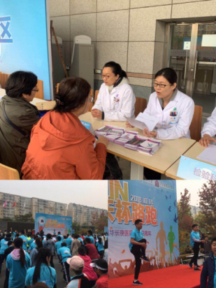 在潘钰主任的带领下,北京清华长庚医院康复医学科师生30多人参加了本次路跑,李欣医生和杨绯医生参与义诊活动。冯家宝和两位同学带领大家做预防运动损伤热身运动,刘琦等三位同学担任旗手和领跑员。我们的患者张阿姨子宫内膜癌术后七年,右腿出现了淋巴水肿,在科室淋巴水肿治疗团队的积极努力下,张阿姨的腿明显好转,不仅加入了北京清华长庚医院志愿服务者,每年路跑张阿姨都积极报名参加,她的坚强和乐观感染了我们每一个人。