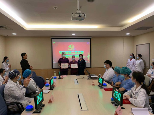 竞赛前,各方代表对都进行了深入的学习和做了充分的准备。本次竞赛分为必答题、抢答题和选答题三个部分,各个代表队利用自己积累的党建相关知识积极回答各个问题。竞赛问题涵盖了从创党党史到十九大报告的各个方面,同时结合当前新冠疫情考察了各位队员的传染性疾病专业知识。现场竞赛气氛激烈,妙趣横生。经过紧张激烈的比赛,最终康复科代表队获得一等奖,眼科和口腔科代表队获得二等奖,皮肤科和中医科代表队获得三等奖。我院党委王克霞副书记、我支部潘钰书记、吕娇副书记、宋丹纪检委员分别为队员们进行了颁奖。潘钰书记在总结发言中充分肯定全体党员和积极分子的积极参与,希望通过知识竞赛以赛促学,今后党支部将通过各种形式的活动提升学习的实效。王克霞副书记勉励我支部全体党员和积极分子继续加强学习党的理论知识,通过形式多样的活动一方面促进理论学习的实效,另一方面活跃党支部气氛,增进大家思想交流和互相促进学习。各参赛代表也发表了学习感言,通过竞赛的学习形式,理论知识能力提升很快,对新形势下党建知识有了更加深刻的理解和认识,希望今后党支部活动多样,大家也将积极参与,加强党员之间的交流和形成党支部良好的学习氛围。