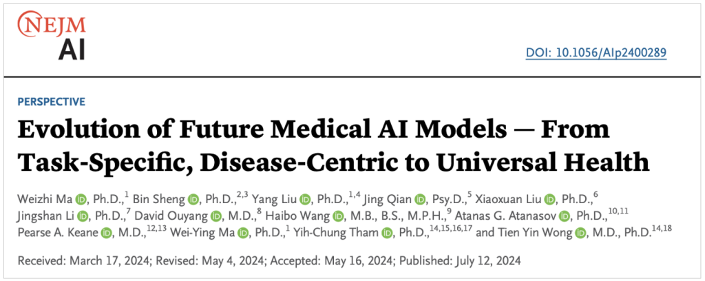 Tsinghua Changgung Professor Wong Tien Yin and others jointly proposed the concept of general medical artificial intelligence and general health artificial intelligenceSEP 02, 2024 -