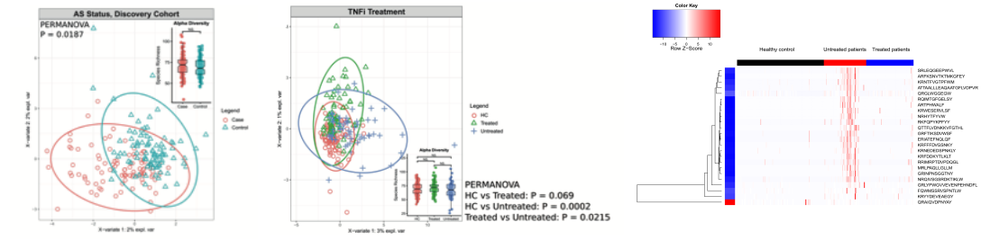 In recent years, a series of studies have shown that the interaction between disordered gut microbiota and host immune system is involved in the pathogenesis of Ankylosing Spondylitis (AS), but the mechanism is not yet fully understood. The major results of Prof. Xu’s study include: 1) Demonstrating that the gut flora of AS patients produces a large number of specific epitope peptides which can be presented by HLA-B27. The finding for the first elucidates the immunologic mechanism that the epitope peptides of gut flora being involved in the pathogenesis of HLA-B27-related diseases. 2) Validating that the altered gut microbiota and their metabolic pathways associated with AS development promote bowel inflammatory responses, which confirms the direct pathogenic role of disordered gut microbiota; 3) Treating AS patients using TNF inhibitors largely ameliorates gut microbiota disorder, implying a novel mechanistic action of TNF inhibitors.