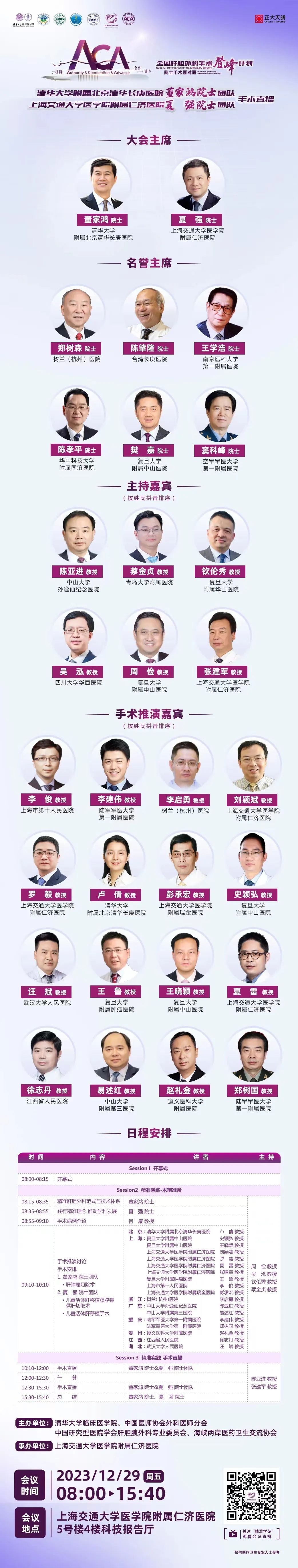 ACA 全国肝胆外科手术登峰计划|院士手术面对面——北京清华长庚医院董家鸿院士团队、上海仁济医院夏强院士团队手术直播