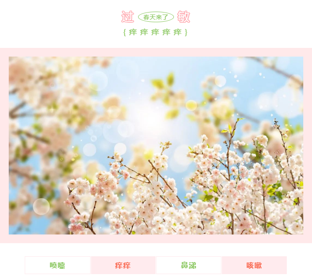 过敏:季节性发作的?鼻子内像有只蚂蚁在行走,有时还伴有眼、耳、咽喉、硬腭等多处发痒?每天多个喷嚏齐发?有大量清水样鼻涕?
