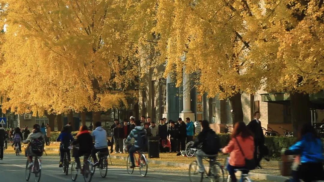 深秋的清华大学,长天净,河清浅,黄叶落满园。