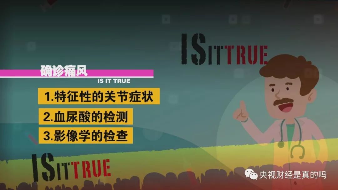 首都医科大学附属北京朝阳医院 风湿免疫科主任医师 路跃武:“一般来说,痛风关节炎的患者有特征性的关节症状,比如突然发病,单关节出现红肿,发热疼痛导致不能走路,一般是24小时到36小时会到最疼的这种程度。具有这样症状的,再结合化验血尿酸与一些影像学的检查就可以确诊为痛风了。”
