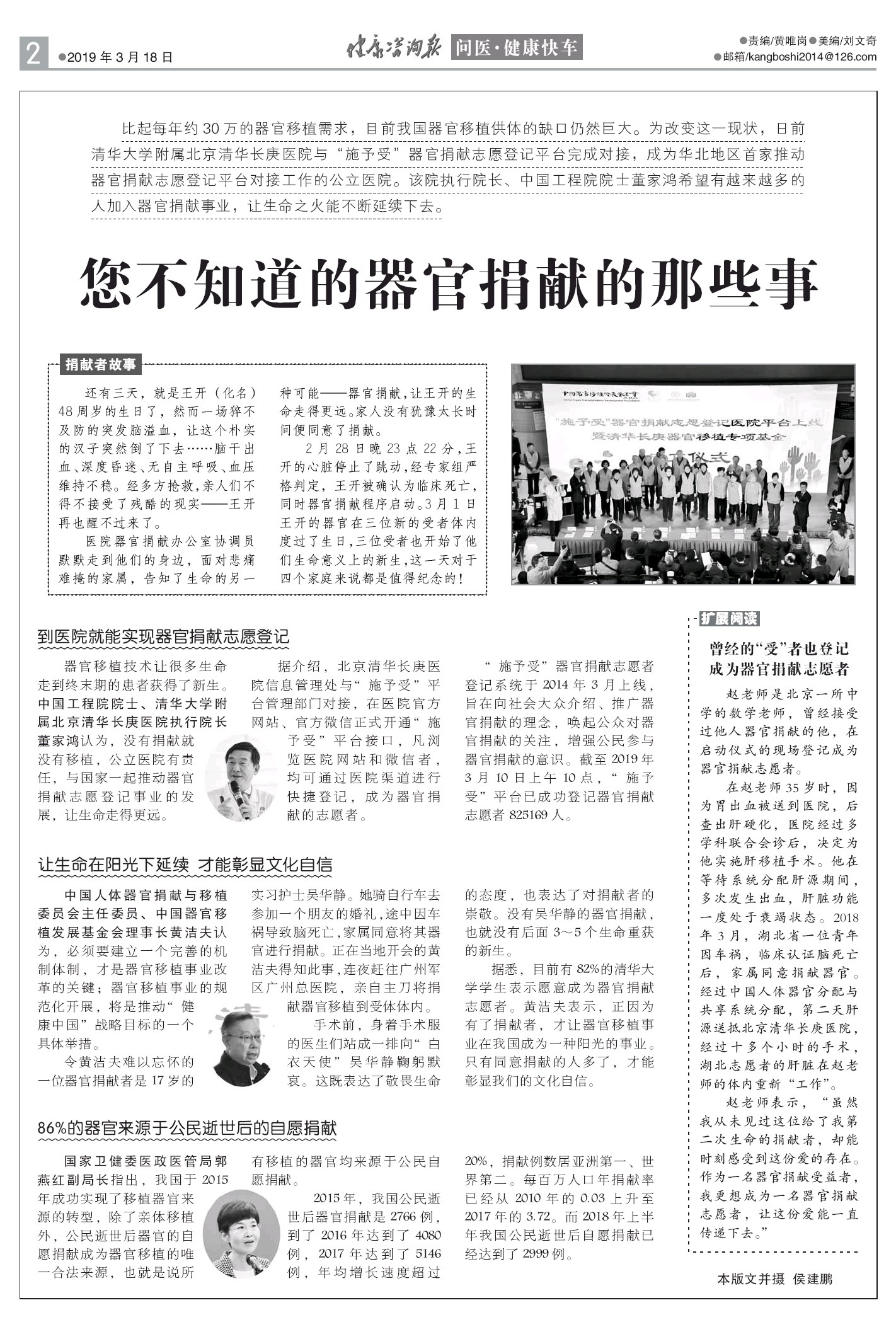 《健康咨询报》专版报道我院器官捐献志愿登记平台启动