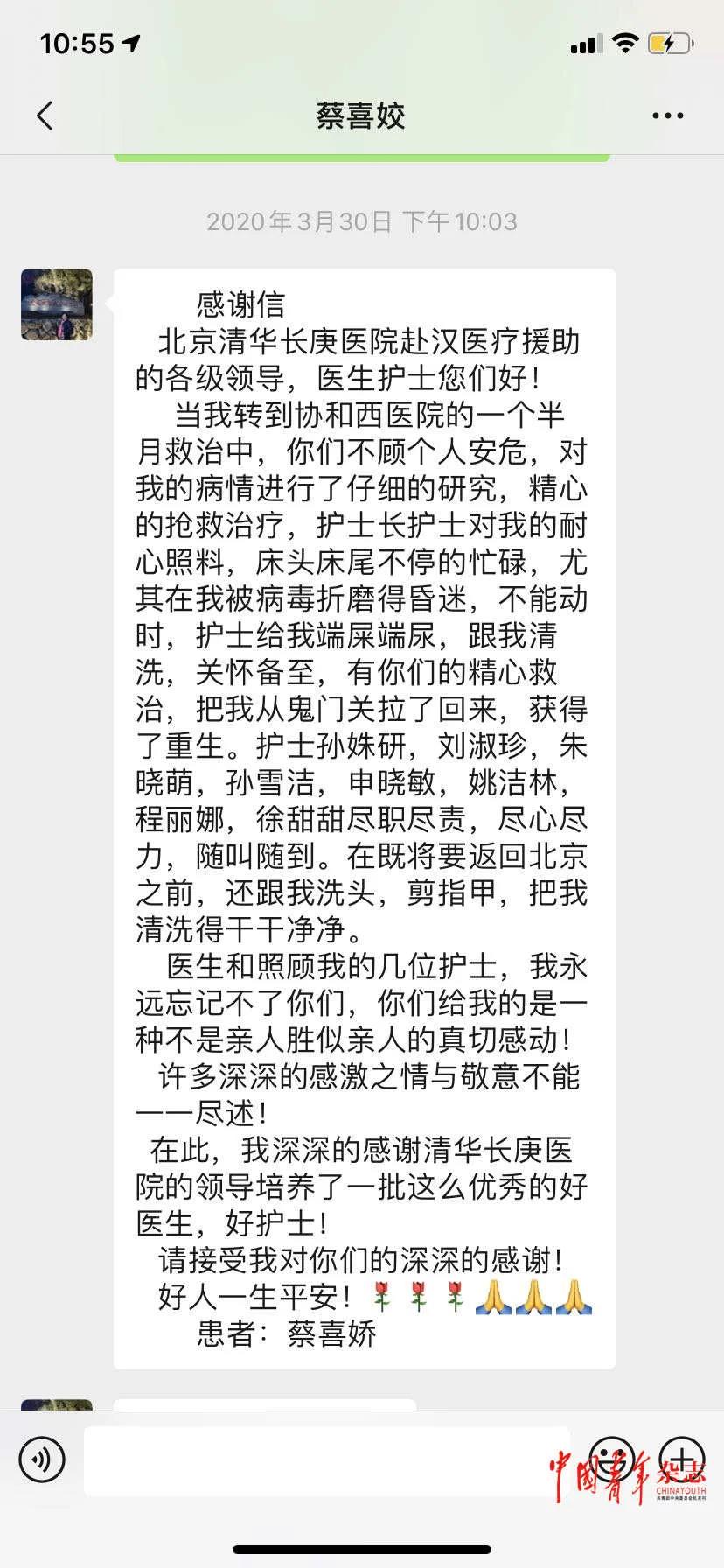 后来,她每次上班,但凡有一点空闲时间,总想着去叔叔的病房和他聊上几句。而每当有北京医疗队的队员进至病房,叔叔也总会问:“是小孙吗?”“小孙来了吗?”两个人会聊叔叔一夜之间就长大的儿子、聊叔叔爱人最近病情的进展、聊他正在姥姥家玩耍的小孙子……