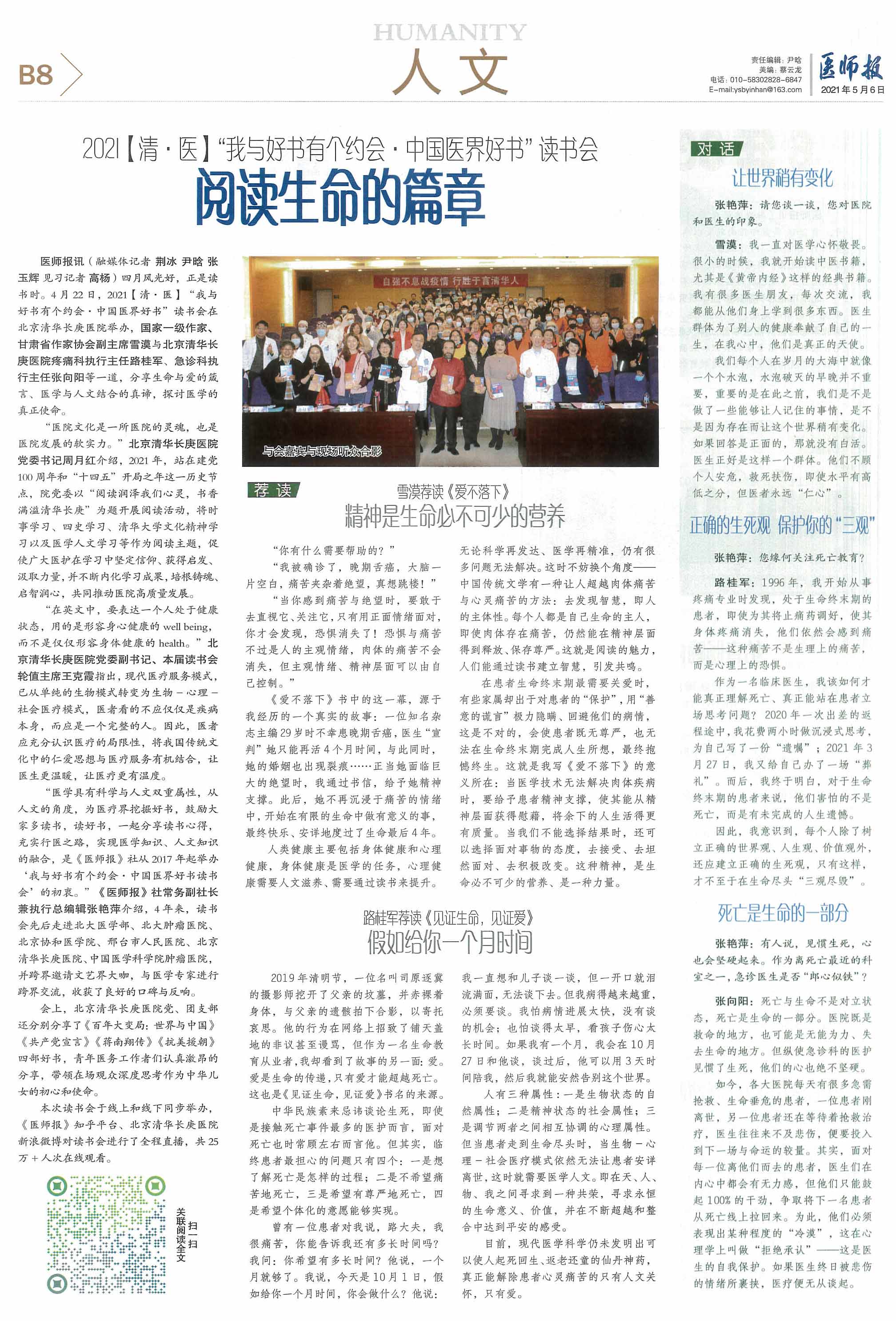 《医师报》正版报道我院联合医师报社举办的2021【清·医】“我与好书有个约会·中国医界好书”读书会
