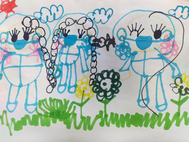 赵婧楠收到的社区小朋友的“大白”画作。受访者供图