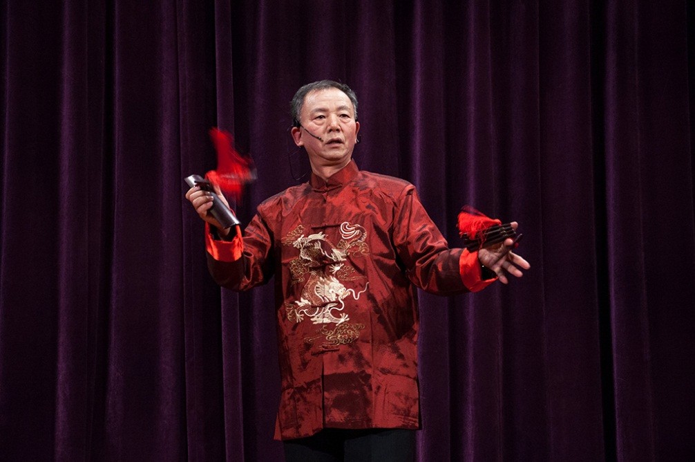 来自天通苑北一区的志愿者李建国表演快板(袁晋程 摄)