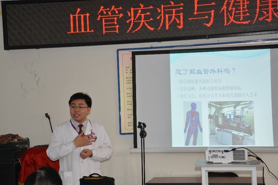 (吴巍巍主任为居民介绍血管外科疾病概况)