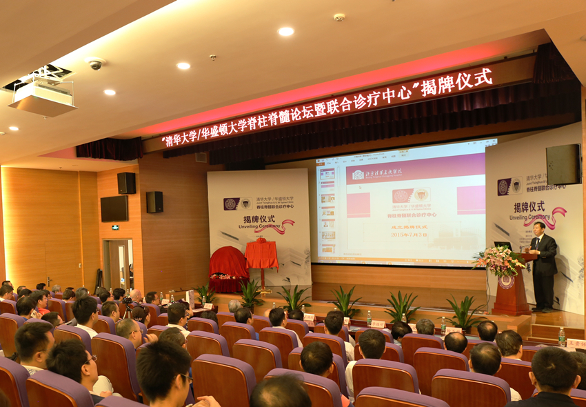 清华长庚医院7月6日电 2015年7月3日,清华大学-华盛顿大学脊柱脊髓联合诊疗中心正式成立,揭牌仪式在北京清华长庚医院举行。两所大学在该医疗领域强强联手,目标促进国内脊柱外科诊疗与国际接轨,填补国内外“脊柱脊髓诊疗”跨国合作的空白,促进该系统疾病诊疗的微创化、精准化。