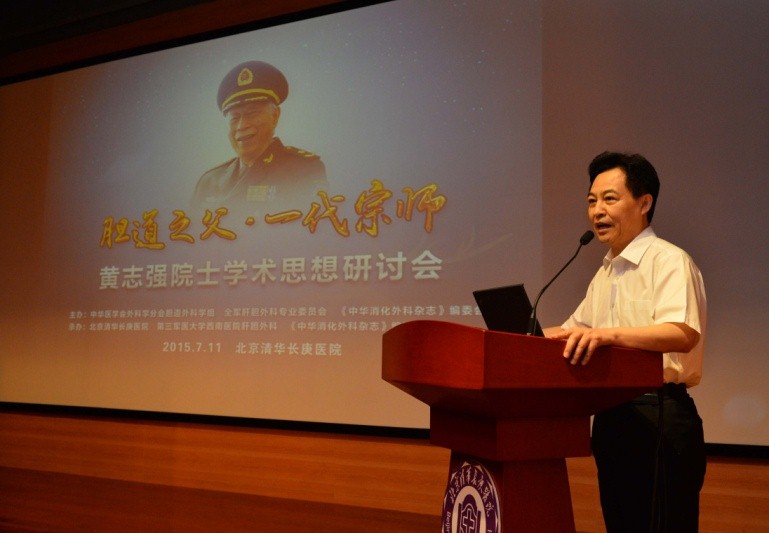 清华长庚7月17日电(通讯员 徐中海)7月11日,由中华医学会外科学分会胆道外科学组、全军肝胆外科专业委员会、《中华消化外科杂志》编委会主办,由北京清华长庚医院、第三军医大学西南医院、《中华消化外科杂志》编辑部承办的“胆道之父,一代宗师”—黄志强院士学术思想研讨会在北京清华长庚医院召开。来自中华医学会外科学分会胆道外科学组、全军肝胆外科专业委员会、《中华消化外科杂志》编委会、北京清华长庚医院、第三军医大学西南医院、解放军总医院以及其它单位的专家两百多人,怀着对黄志强院士无比的崇敬之情参加研讨会。出席研讨会的有中国科学院院士、中华医学会副会长、中华医学会外科学分会主任委员、北京协和医科大学副校长、北京协和医院院长赵玉沛院士,中华医学会外科学分会副主任委员、中国外科医师协会前任会长冷希圣教授,中华医学会外科学分会胆道外科学组前任组长祝学光教授,中华医学会外科学分会副主任委员、全军器官移植中心主任窦科峰教授,著名外科学家钟守先教授、王宇教授、张宝善教授、田伏洲教授、邹声泉教授、李世拥教授、姜洪池教授、陈规划教授、王国斌教授、杨广顺教授等专家学者。研讨会由中华医学会外科学分会胆道外科学组组长、《中华消化外科杂志》总编辑、全军肝胆外科专业委员会主任委员、北京清华长庚医院执行院长、著名肝胆外科专家董家鸿教授主持。