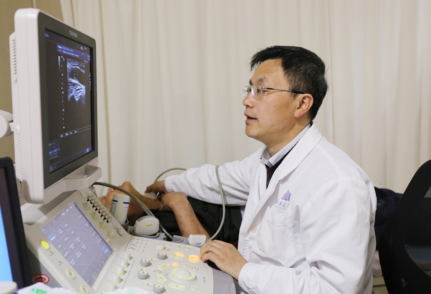 一点是检查过程中的大局观,以全局洞悉一处细微的病变。超声医师决定着后期大夫的诊断,稍微可疑的病变,都可能造成医生诊断的差别。超声大夫的水平,就体现在对病变诊断的层次上,基础知识特别丰富,才能透过表面,做出深入的诊断。有一次,一位肚子疼10多年的患者,反复行腹部超声检查,都没有发现问题,张华斌没有局限于检查单上的腹部超声,肝胆胰肺肾通查一遍。终于,在反复扫描腹腔主动脉时,发现动脉发出的第一支血管,超声反馈不清楚,和旁边的血管有侧枝。如果没跳出腹部,如果没有关注这一处模糊,检查的结论就是一切正常,而这样就错过了一个中弓韧带压迫综合征的病人。“想不到,就查不到。”张华斌说。