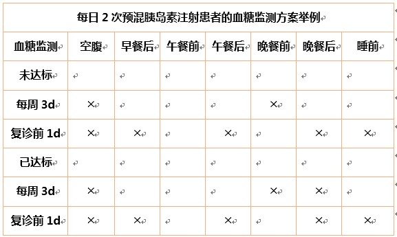 2.每日2次预混胰岛素治疗患者的血糖监测方案