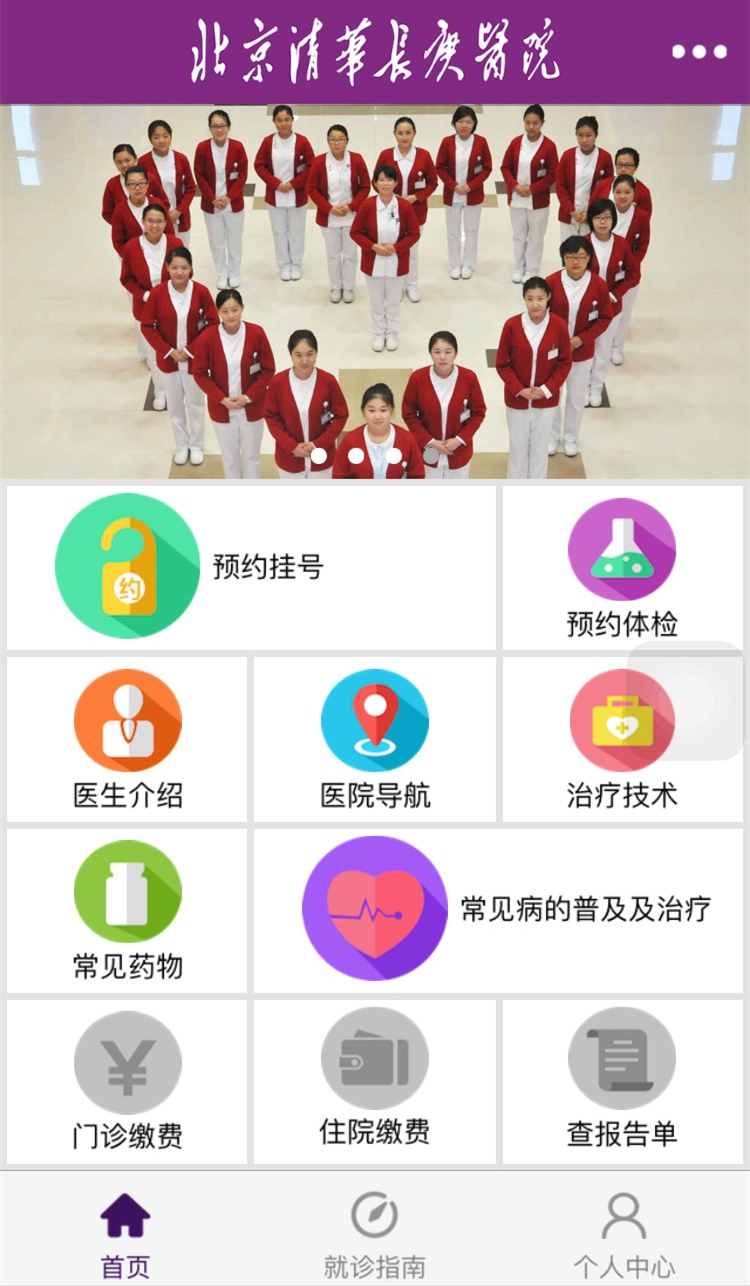 北京清华长庚医院挂号APP主页