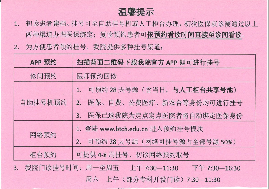 父子两人返回老人优先柜台缴费时,柜台小姑娘还给了李爷爷一张粉红色的挂号温馨提示。李大爷看着手里的两张挂号单、温馨提示,对这次的就医感到满意。(北京清华长庚医院医事处 宣)