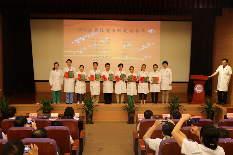 师资培育中心主任陈旭岩部长和医教会副主席叶京英部长分别宣读了此次获得表彰的优秀带教老师及优秀住院医师名单。我院历时两个月,通过科部推荐、综合评选、网络投票、医教会审议、院务会决议、公示的程序,最终评选出十二名“优秀带教老师”和八名“优秀住院医师”,其中,心内科刘芳、消化内科任渝棠、神经外科王贵怀、普外科罗斌、妇产科张蕾、急诊科张向阳、皮肤科赵邑、放射科郑卓肇、ICU申晓敏、供应室张杜娟、内科邓聪、NICU马宁被评为2016“优秀带教老师”;心脏内科王昊天、神经内科宋晓微、骨科付立功、肝胆胰外科王良、儿科孟洪、普通内科段瑶、耳鼻喉头颈外科陈雯婧、病理科孟轶婷被评为2016年“优秀住院医师”。