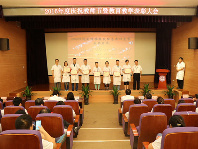 在过去的一年里,我院为了提升住院医师的基本临床技能,举办了系列临床基本功比赛,王劲副院长宣读了2016住院医师及研究生临床基本功技能比赛获奖名单,获得七项临床技能单项奖第一名的分别是张会娟(内科技能竞赛)、庄卓男(外科技能竞赛)、周毅辉(专科部病理汇报)、孟慧杰(用药咨询)、张玉娟(检验结果判读)、包晗(医学影像判读)、杨靖(心电图判读)。