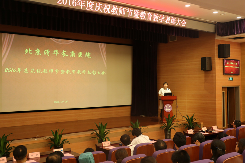 清华长庚医院9月7日电(科教处 王甲瑶)2016年9月6日,北京清华长庚医院于集会厅隆重召开2016年度庆祝教师节暨教育教学表彰大会,共同庆祝第三十二个教师节,并对我院在教育教学工作中的先进代表和事迹进行表彰。医院全体员工及研究生代表参加大会,清华大学医学院吴励副院长派刘津平老师、谢兰老师前来参会。会议由王劲副院长主持。