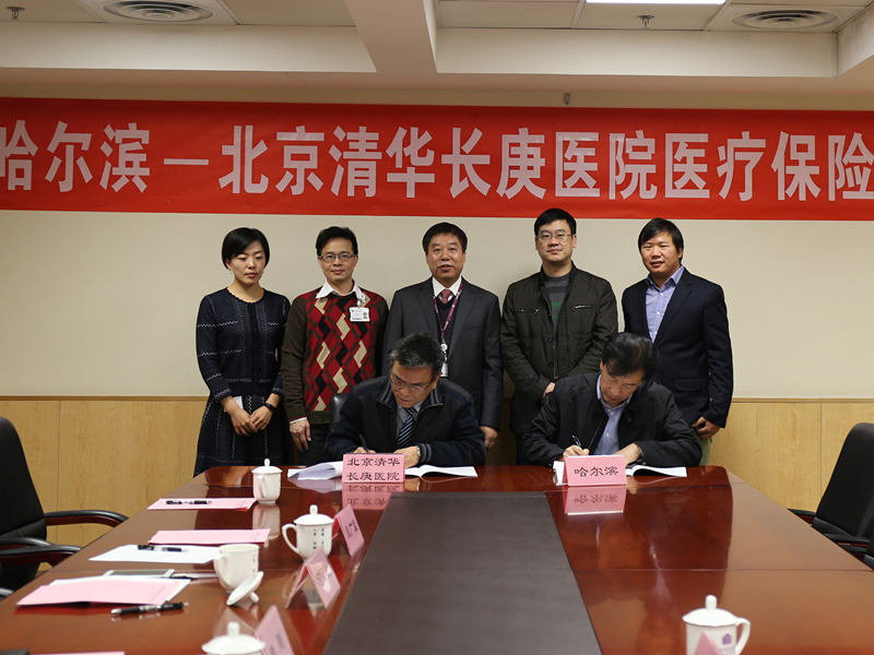 清华长庚医院11月16日 (通讯员 沈晓梅)2016年11月16日上午,北京清华长庚医院与哈尔滨市人力资源和社会保障局正式签订《哈尔滨市基本医疗保险定点医疗机构服务协议》,成为哈尔滨在北京的城镇基本医疗保险定点合作医疗机构,这意味着哈尔滨市380万参保人员可持医保卡在北京清华长庚医院就诊,并完成异地医保的即时结算,无需患者先行垫付,再返回参保地报销费用。这将极大地提高当地参保人员就医便利度,特别是常年在京工作生活的哈市参保人员。同时和具有大量优质医疗资源的北京清华长庚医院合作也有利于缓解疑难重病患者异地就医的经济压力。哈尔滨市人力资源和社会保障局医疗保险处处长龚岩、医疗保险管理中心主任杨林、北京清华长庚医院总执行长郭明和、副总执行长赵刚等出席签约仪式。