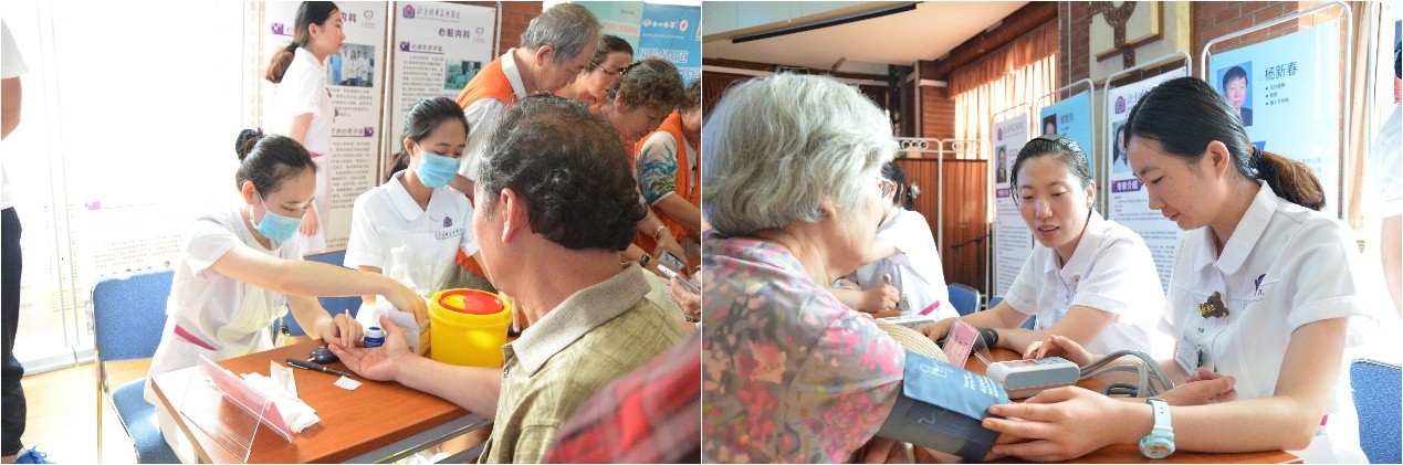 北京清华长庚医院护理人员为清华大学师生测量血压、血糖