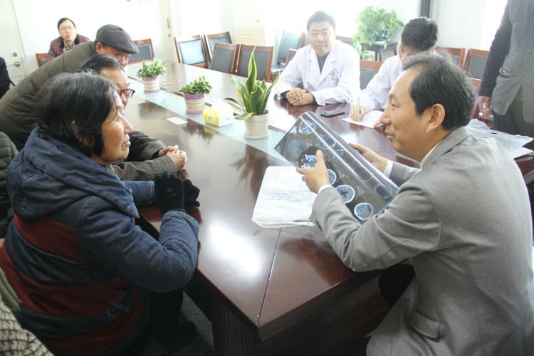 座谈会结束后,与会人员一同观摩了射阳县人民医院远程会诊中心,并现场与北京清华长庚医院远程医疗中心、手术室连线,进行了射阳县人民医院首例远程会诊。北京清华长庚医院副院长王劲与王贵怀及射阳县人民医院神经外科医师现场进行了远程会诊,与患者进行在线交流,双方医师共同商讨制订出下一步的治疗方案。随后,王贵怀又现场进行了6例疑难病例的义诊会诊。