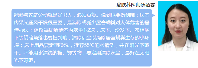 勤劳的人们,打扫的时候注意啦!北京清华长庚医院皮肤科医师提醒您:地毯、沙发、毛绒玩具、被褥、坐垫、床垫和枕芯等,这些家人最常接触的地方,也是螨虫聚集最多的地方,请您尤其仔细打扫哦!