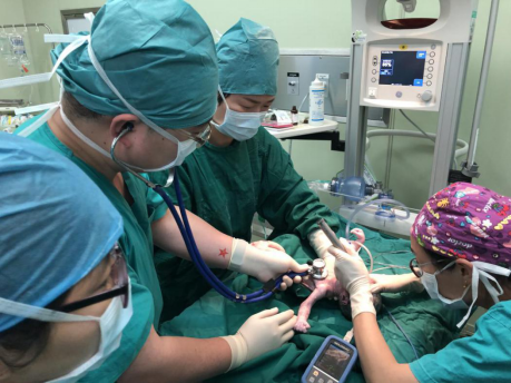 12月24日下午3点,接到产科的电话后,儿科李然、王月娇主治医师以及NICU护士长王皓月立即赶往手术室等候婴儿出生,从产科医生手中接到“小苹果”后,立即为她进行气管插管,气管内注入肺表面活性物质,生命体征刚刚平稳后,迅速用暖箱转运回NICU病房。经过10天的呼吸机支持治疗,“小苹果”成功闯过了呼吸这道关。回忆“小苹果”来到世界的第一周,医务人员仍然很紧张,“监测血气分析时有不满意,看着她的小手腕,我们都舍不得扎针。”NICU的护士说。期间还出现了监测炎症指标升高,胸片双肺纹理模糊,考虑肺部感染重,“在升级抗生素后,各项指标慢慢好转,我们才松了一口气。”王月娇说。