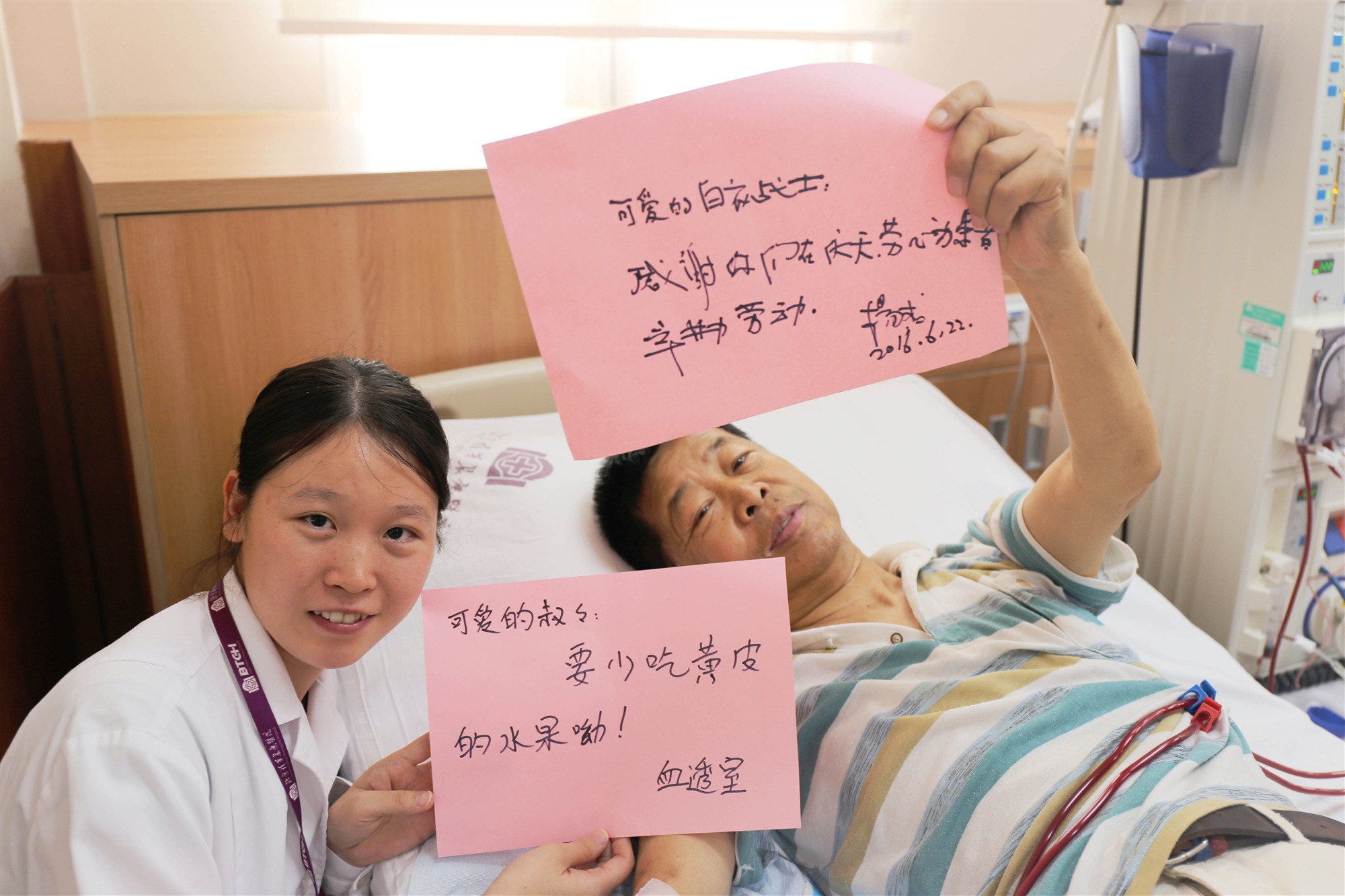和假期一样要值守的急诊、ICU等科室的同道不同,肾脏内科血液透析室值班,是为了守护一群“家人”一样的老朋友。节假日的医疗大楼有点类似春节时的北京,平时熙熙攘攘的门诊大厅,缴费柜台,全都空无一人,只有廊灯静静地亮着。穿过安静的走廊,仿佛连心都跟着一起平静了。到达血液透析室,看着熟悉的透析患者的笑脸,不自觉地就会跟着一起笑起来,因为他们是我作为一个医生的力量源泉,是我多年从医没有放弃的原因,为了他们,我想做一个好医生。
