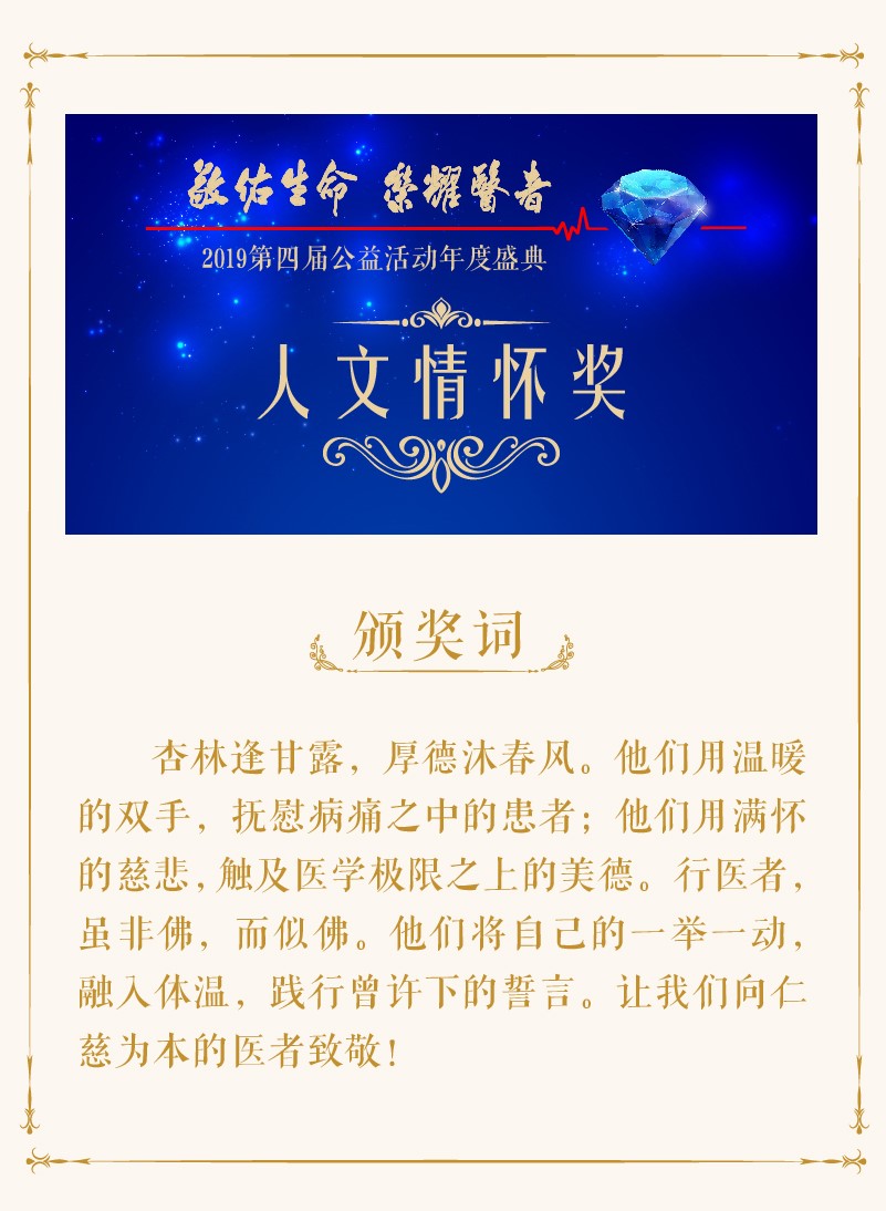 “敬佑生命 荣耀医者”公益活动至今已是第四届,活动历时5个月余,组委会共收到全国20多个省、市、自治区,百余家医院500余位个人和团队的报名信息。获奖者来自全国各地的医疗前线,有大城市三甲医院的专家,也有偏远地区卫生室的村医;有步履蹒跚、年逾耄耋的老大夫,也有临床一线年富力强的青年医生;有手术里的外科圣手,也有护理战线的美丽天使……