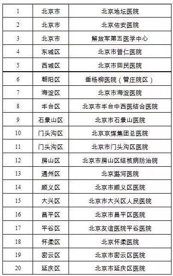 另,北京市区两级分别确定了新型冠状病毒感染患者的定点医院,名单如下: