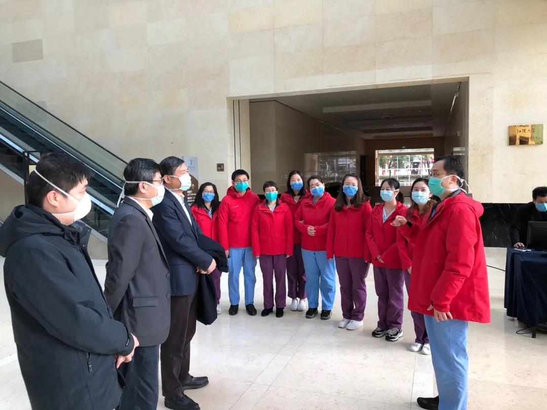 图为董家鸿执行院长一行慰问北京清华长庚医院援鄂医疗队员