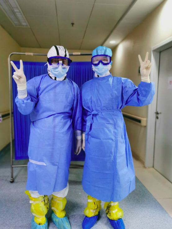 再进隔离区,郭军对防护装备充满信心,他严格地要求队员反复练习穿脱防护服并做好手卫生等感控的各项要求。在隔离病区一定要严格落实三级防护要求,这样一定能够杜绝医护人员被感染。